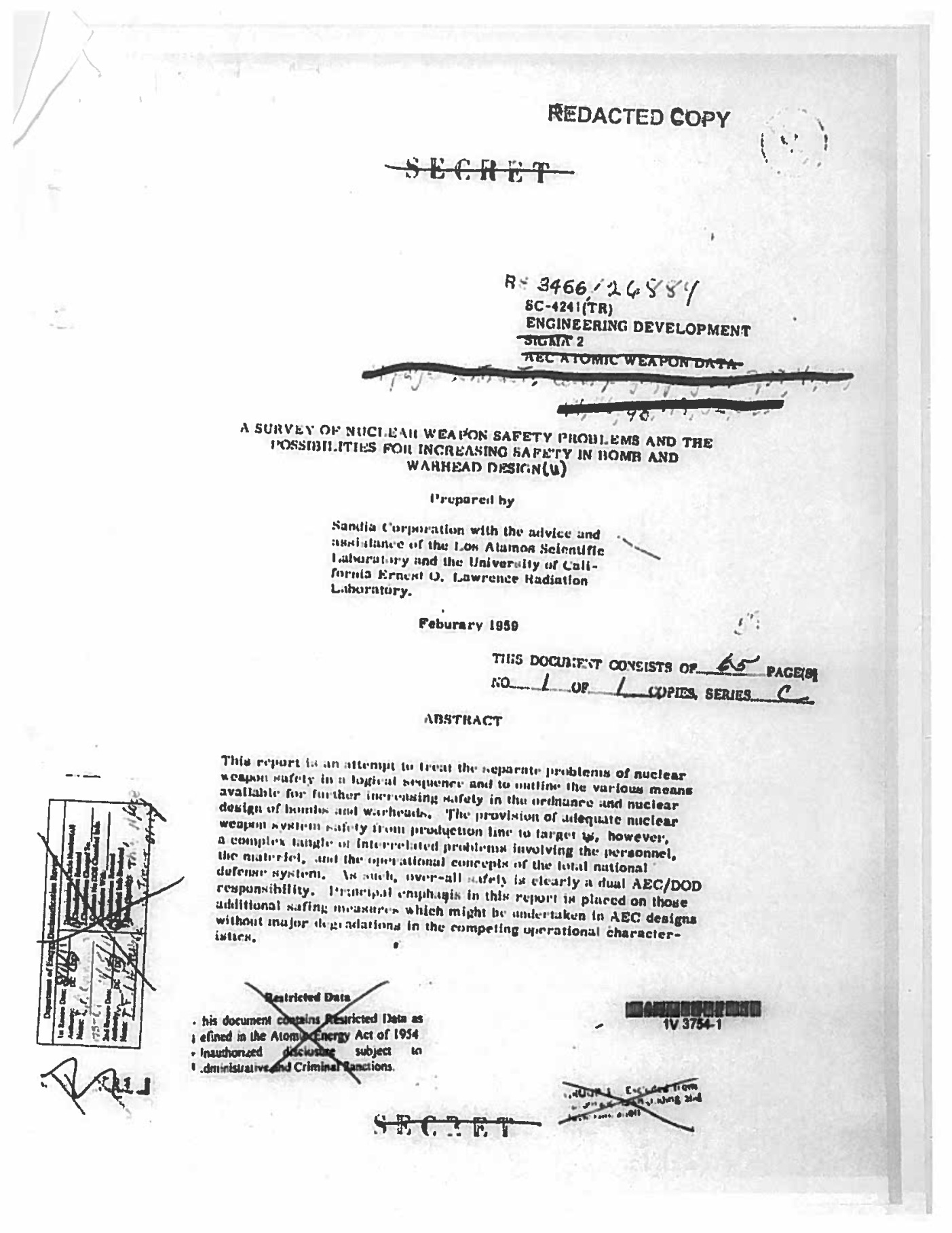 —William L. Stevens, The Origins and Evolution of S2C at Sandia National Laboratories: 1949 to 1996, Sandia National Laboratories, Secret, Excised copy