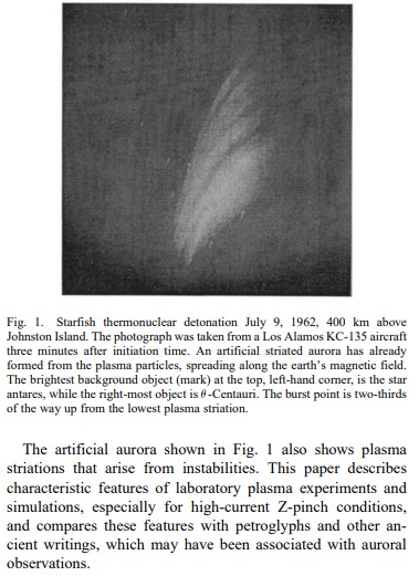 What would an atomic detonation look like to such a being? If these things, be they faeries or janitor-archons, are indeed a race of sentient plasma, humanity's newfound capability to disrupt the electromagnetic ecology could be profoundly disturbing to them. Even if “nuclear winter” is a hoax in our world, perhaps it is real in theirs.
