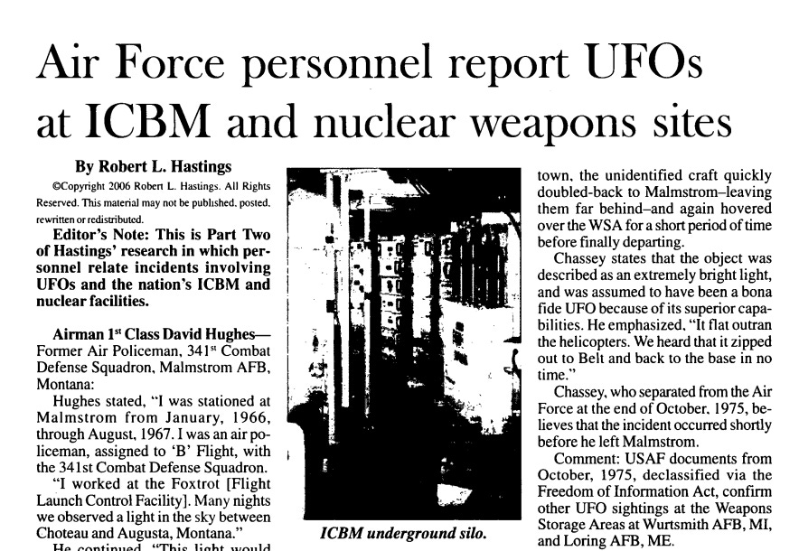 Thus, it is no wonder a constant stream of soldiers and airmen witness near ICBM sites. Like an underground obelisk, the ICBM stands as a threshold marker between two worlds, the pre and post-atomic. The nuclear silo, pregnant with god-flame, is a psychic delimiter. It is a portal, a tunnel into the secret order of things.